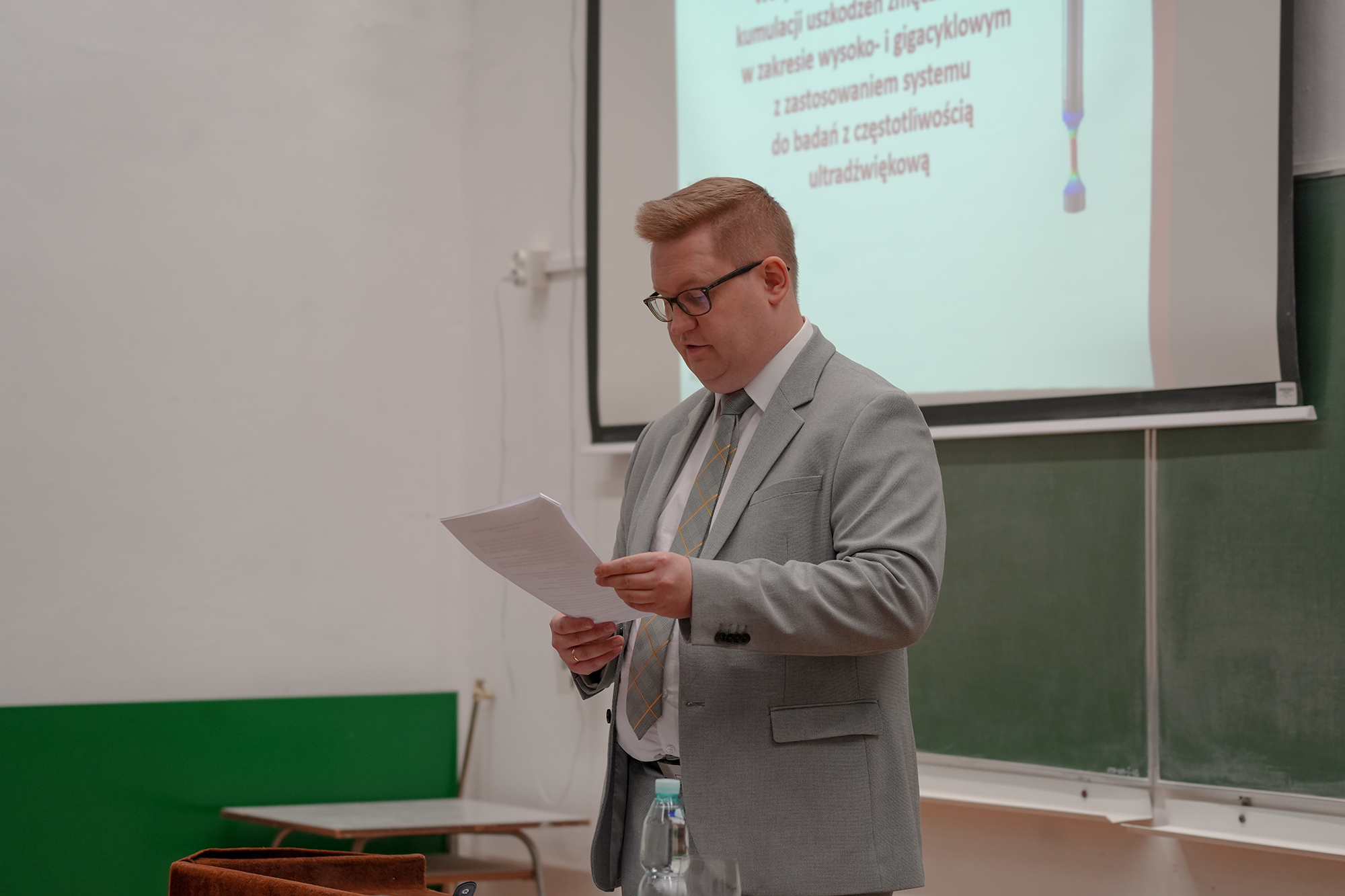 W dniu 21 kwietnia 2026 r. na Wydziale Inżynierii Mechanicznej Politechniki Bydgoskiej im. Jana i Jędrzeja Śniadeckich odbyła się publiczna obrona rozprawy doktorskiej mgr. inż. Piotra Swachy pt. „Weryfikacja wybranych hipotez kumulacji uszkodzeń zmęczeniowych w zakresie wysoko- i gigacyklowym z zastosowaniem systemu do badań z częstotliwością ultradźwiękową”.